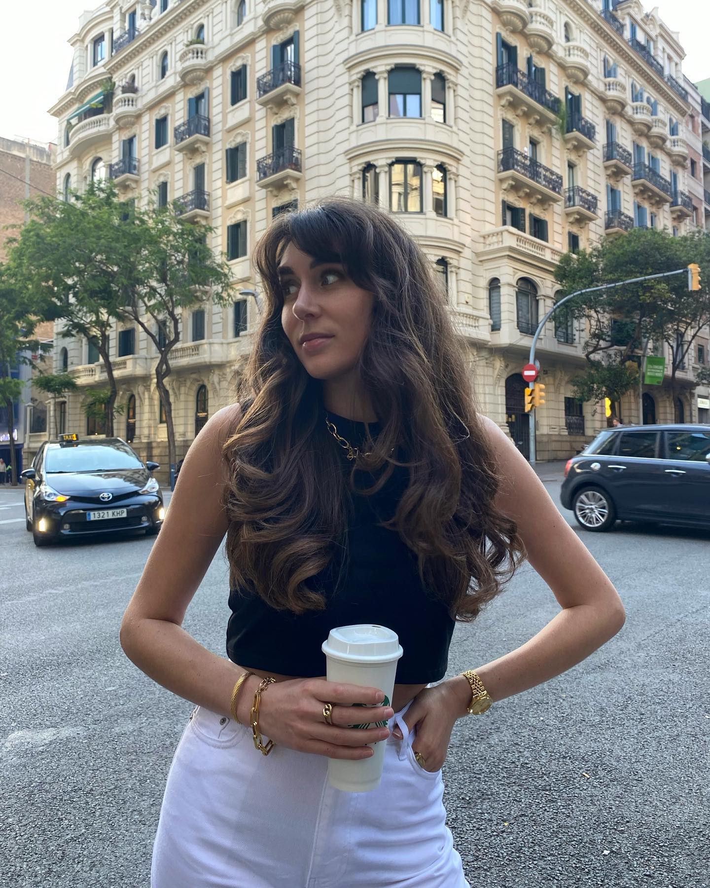 For a more laid-back yet stylish ensemble, I paired the same Enza Costa Textured Cropped Tank with the AGOLDE 90s Pinch Waist Jeans. These classic white jeans add a fresh and summery vibe to your look, perfect for a casual day out with friends or a shopping spree downtown. Throw on some oversized sunglasses and a crossbody bag, and you’re all set to turn heads wherever you go!